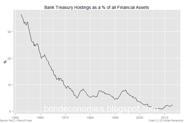 the assets of the banking sector. The importance of Treasury holdings steadily