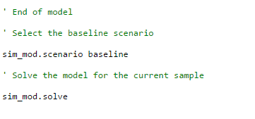 In other words, the program invokes the "solve" method on the "model" object, which is defined by proprietary Eviews code. (One hopes that there is some technical documentation for that method somewhere.)