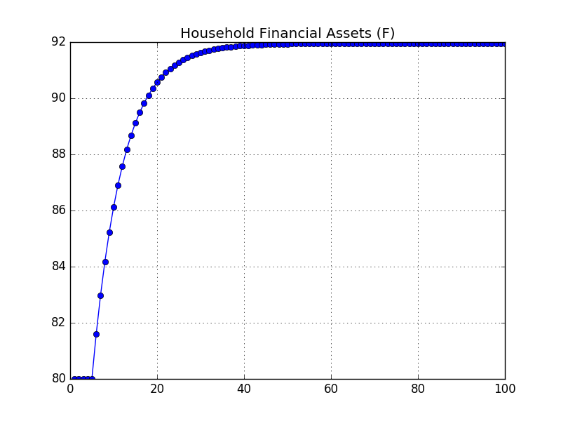 This article will be unfortunately brief. I started working on an adding financial asset markets to my Python Stock-Flow Consistent (SFC) Model library, and I was ambushed by various bugs. (As various economists have remarked, it is a bad idea to mix up stocks and flows.) It looks like the code is working, but I still want to look over the results before making longer commentary. However, the code did reproduce one of the distinctive implications of SFC models: raising the rate of interest increases national production (in nominal terms, at least).