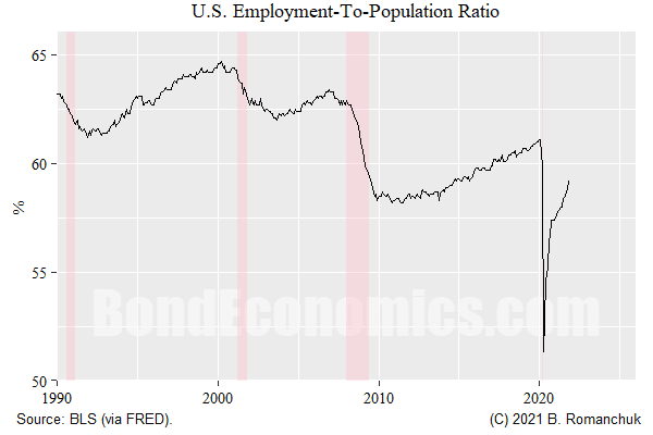 The latest U.S. labour market data dump was consistent with continued improvement in the labour market, with the broad employment-to-population ratio rising to 59.2% (figure above). That is well above the lows, and returned to the values seen in middle of the last cycle.